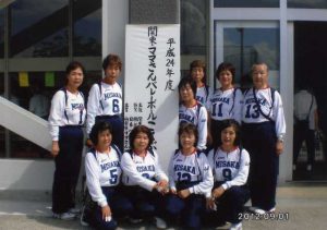 私達「御坂スマイル」はチーム発足3年目になります。部員は今年度、1人増え、やっと10人になりました。部員が少ないため、ケガをしないよう声をかけ合い、週1回VCの人達と合同で練習しています。部員確保には、地域の方々にも声をかけて募集していますが、なかなか見つかりません。今年は猛暑の続く中、VCの人達の力を借りながら練習を重ね、大会に臨みました。