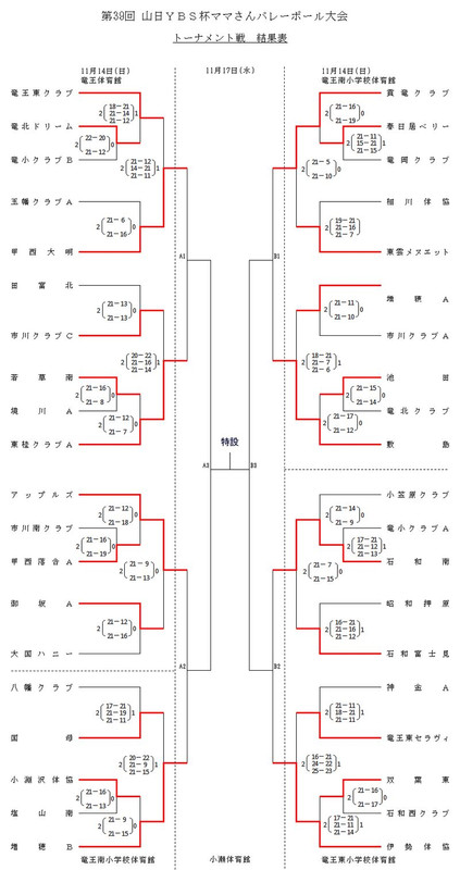 第39回 山日YBS杯ママさんバレーボール大会 山日YBS杯 2010.11.142018.11.27 トーナメント戦1日目・結果 ◇ ◆ ◇ ▼出場チーム一覧表 ※ ←クリックにて別ウィンドウ表示します。