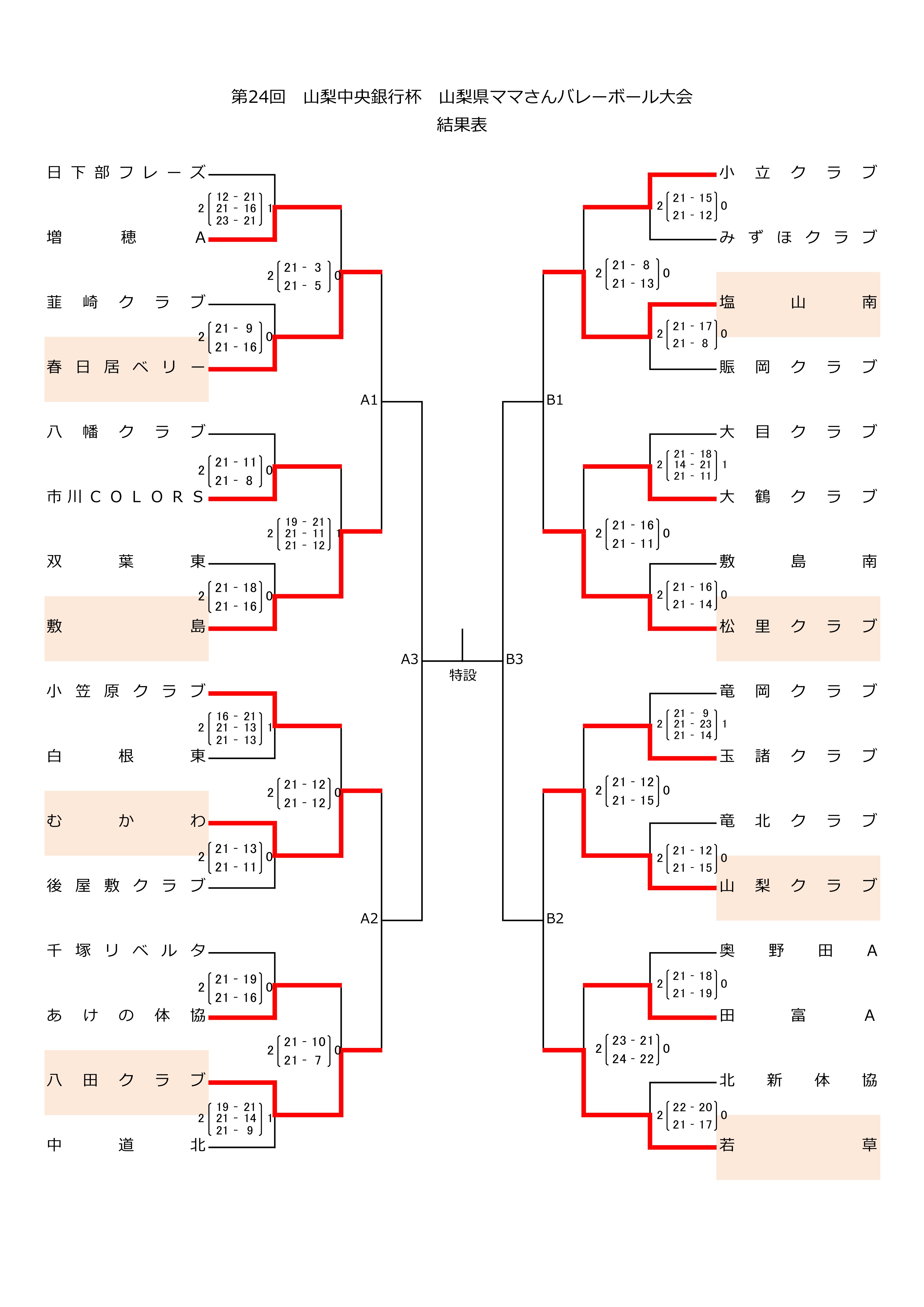 第24回 山梨中央銀行杯【1、2回戦結果表】