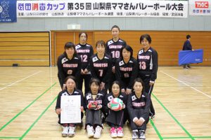 3セット目に入り、四方津クラブキャプテン和智のサーブが走り、チームも勢いを取り戻し、5対0とリードする。小立クラブも両エースにボールを集め、何とか食らいつくが、四方津クラブを止めることができない。最後は小立クラブのミスで21対11で四方津クラブが取り、セットカウント2-1で優勝した。
