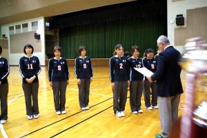 第1セット序盤から東桂クラブAのエース平井・郷田選手が連続でスパイクを決め、くしがた北クラブは緊張のためかスパイクやレシーブで初歩的なミスが重なり、Wスコアで東桂クラブAに先行される苦しい展開となった。