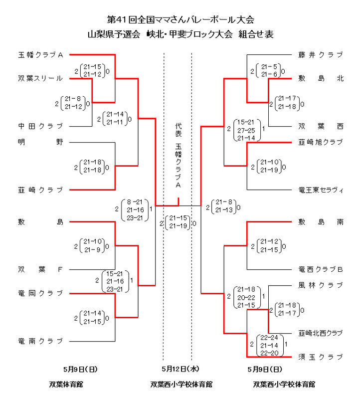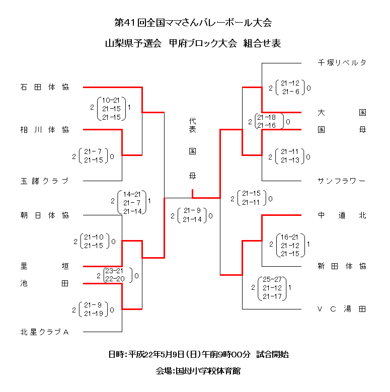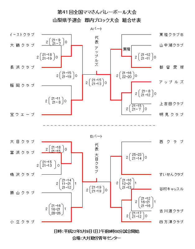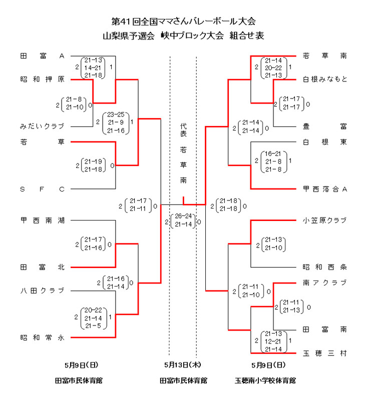 山梨県予選 各ブロック大会結果&中央大会全組合せ表