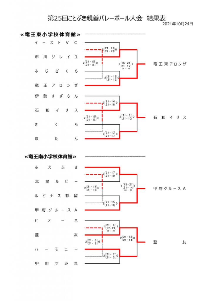 第25回ことぶき親善バレーボール大会【結果表】2021年10月24日