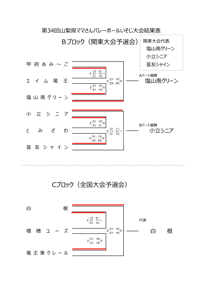 第34回山梨県ママさんバレーボールいそじ大会結果