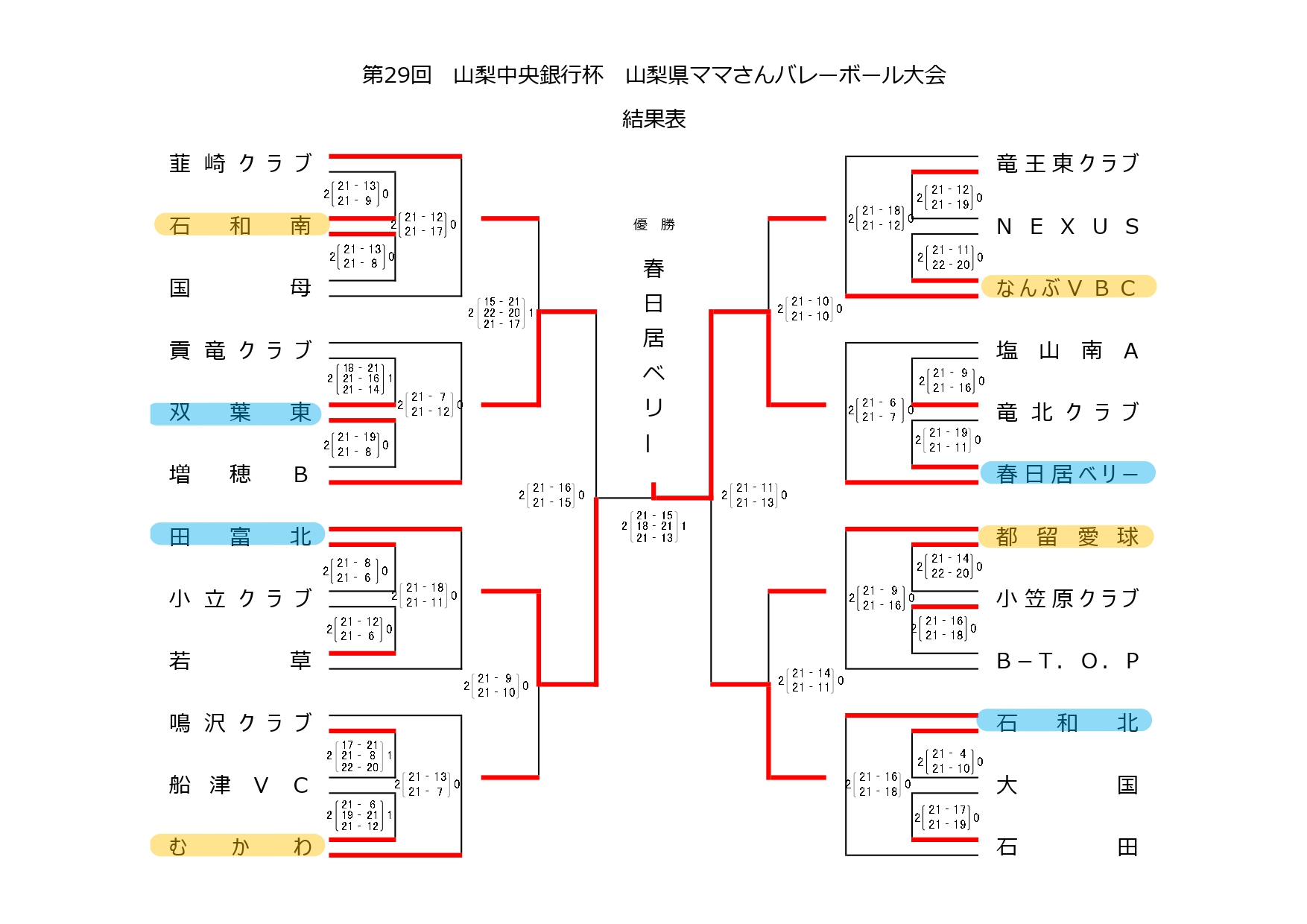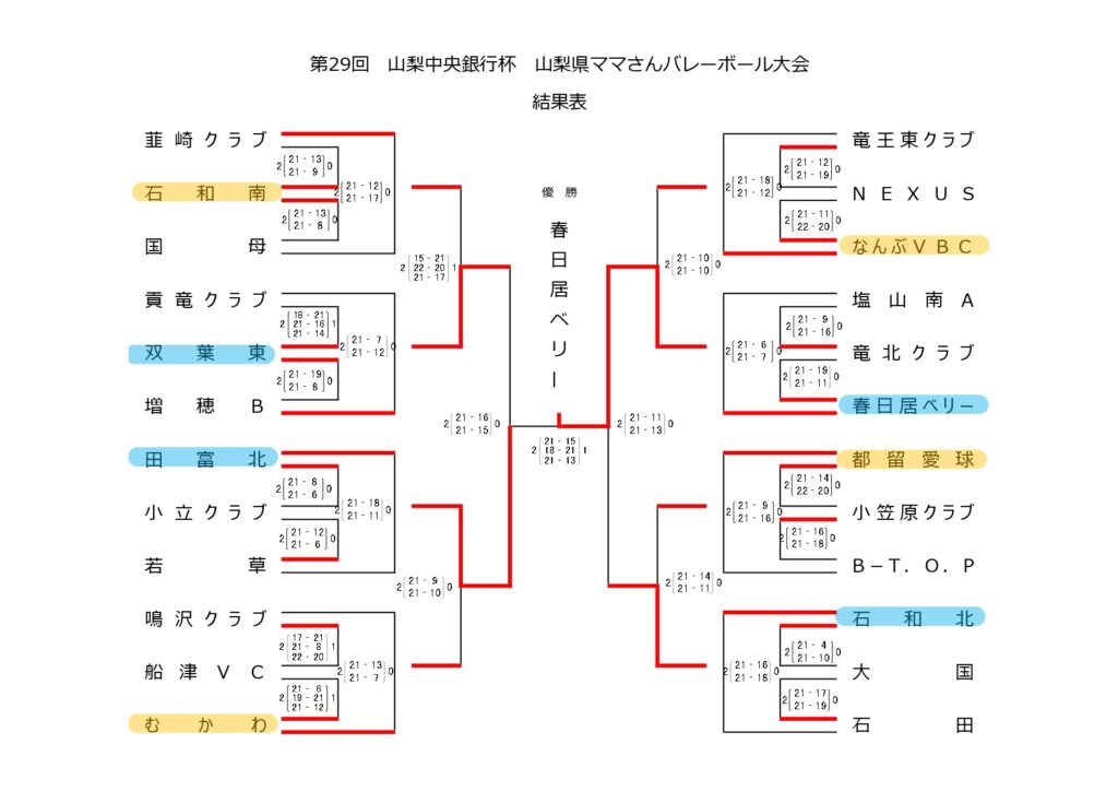 第29回 山梨中央銀行杯 山梨県ママさんバレーボール大会 最終日結果