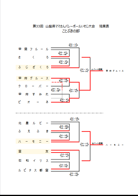 第33回山梨県ママさんバレーボールいそじ大会結果