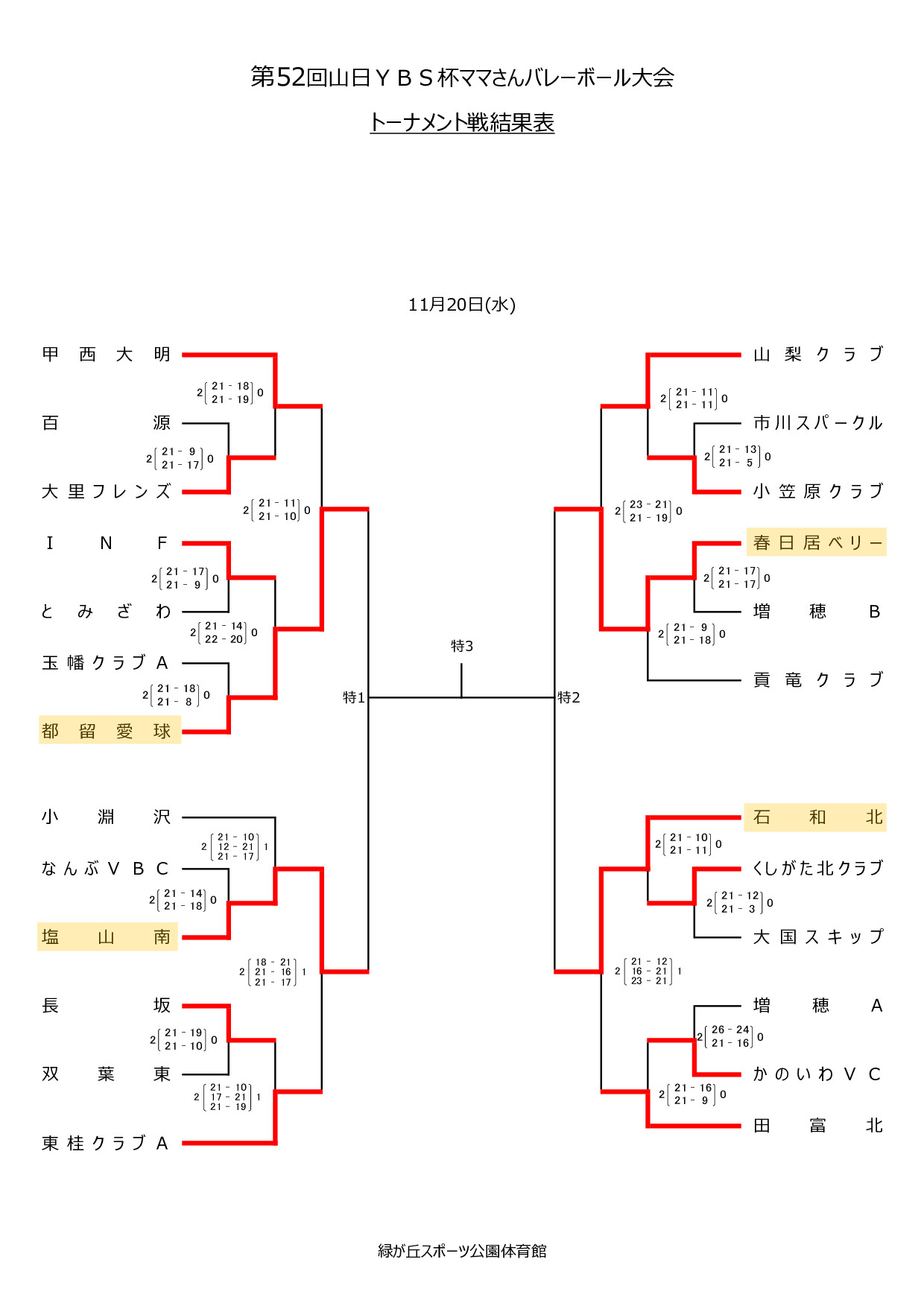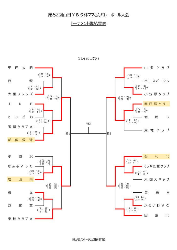 第52回山日YBS杯ママさんバレーボール大会【トーナメント進出チーム】