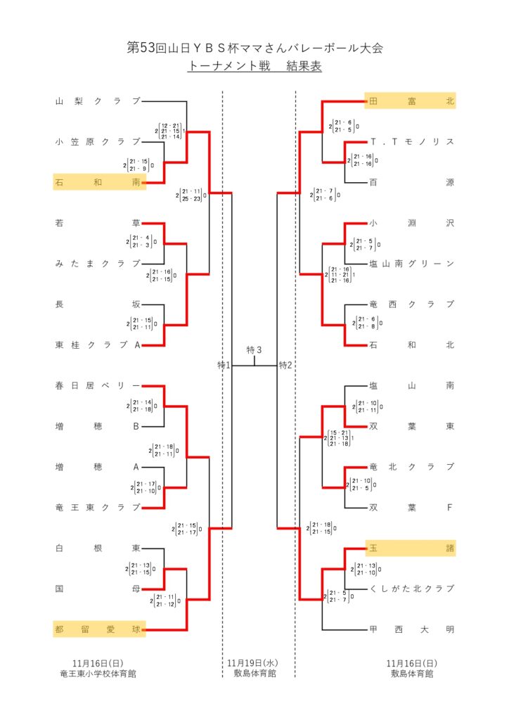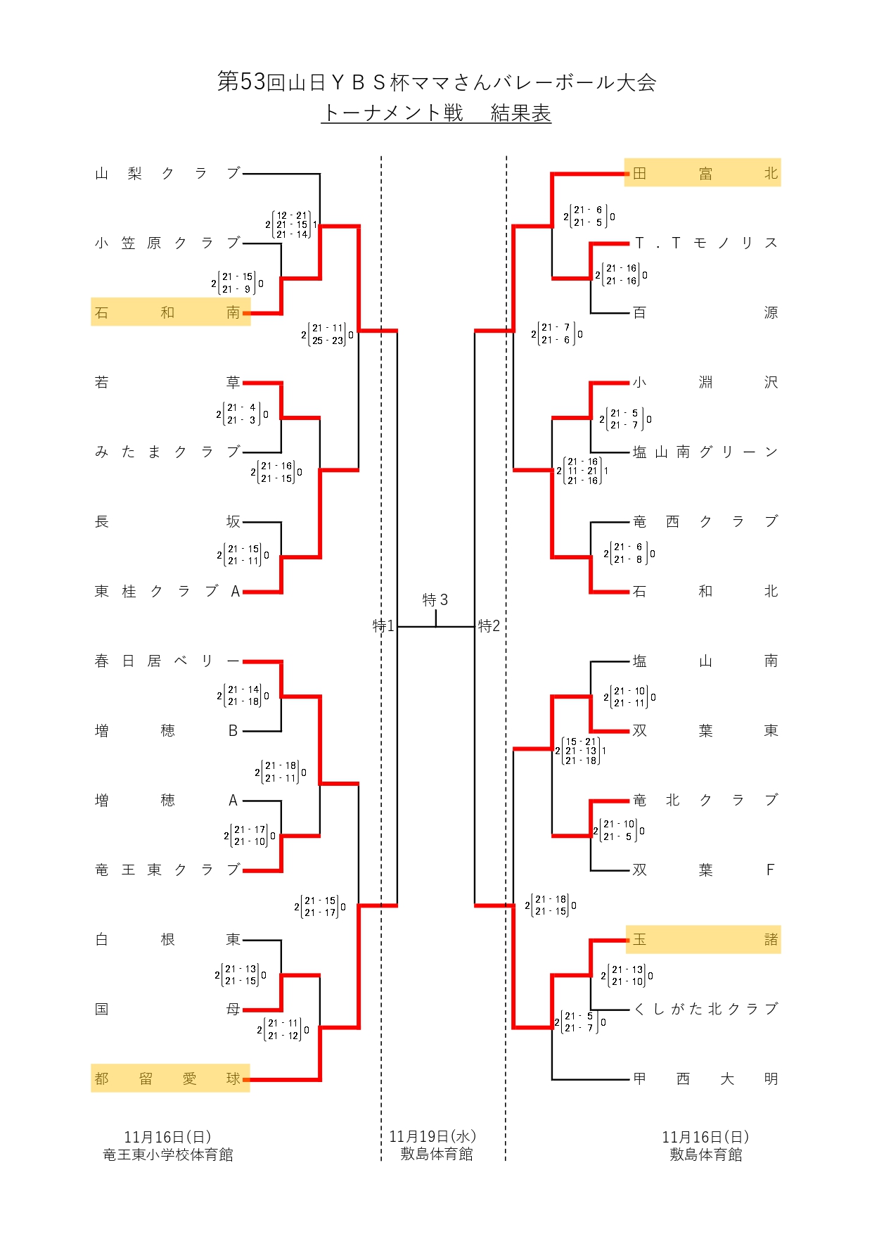 第53回山日YBS杯ママさんバレーボール大会【トーナメント進出チーム】