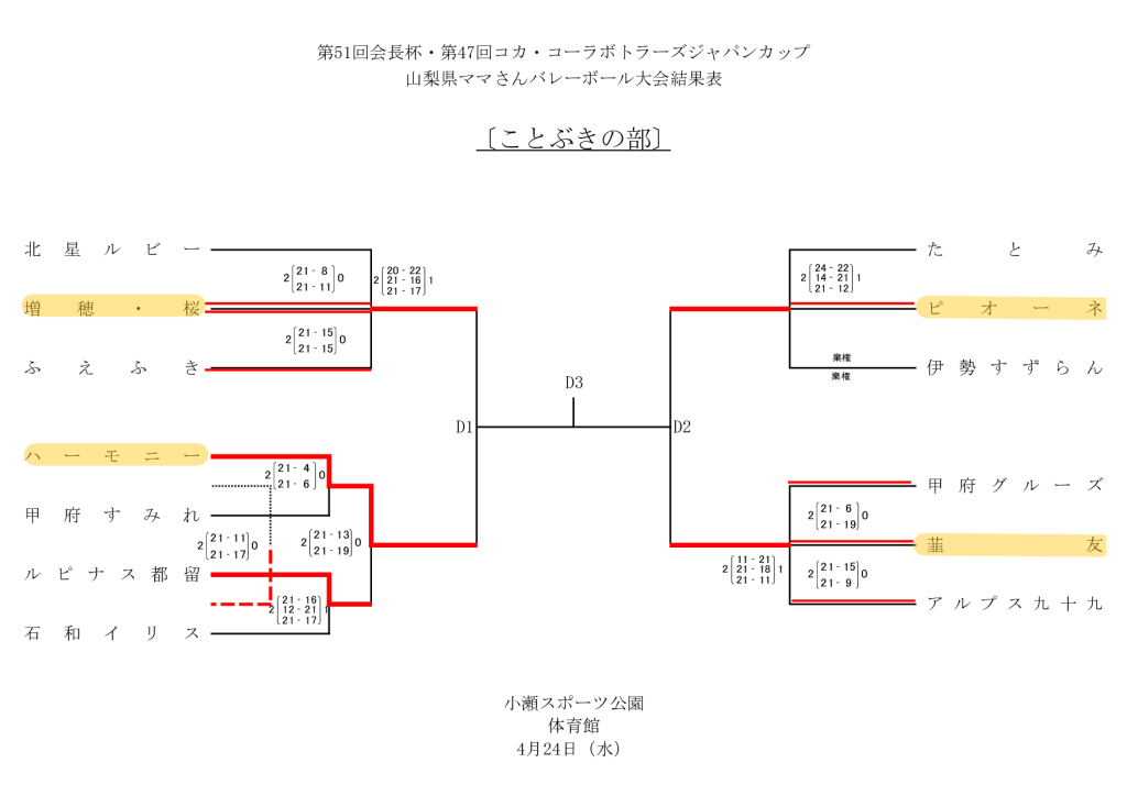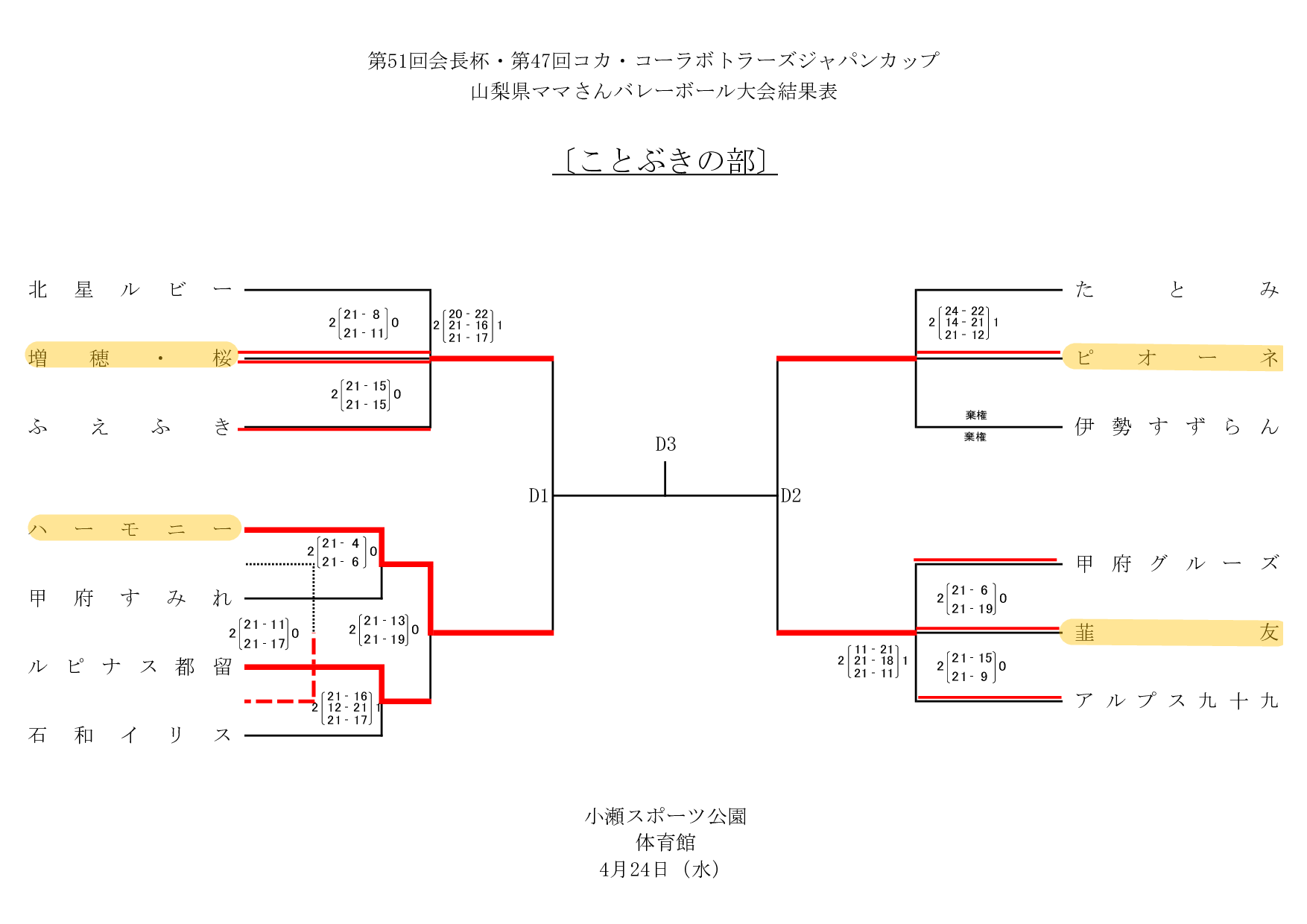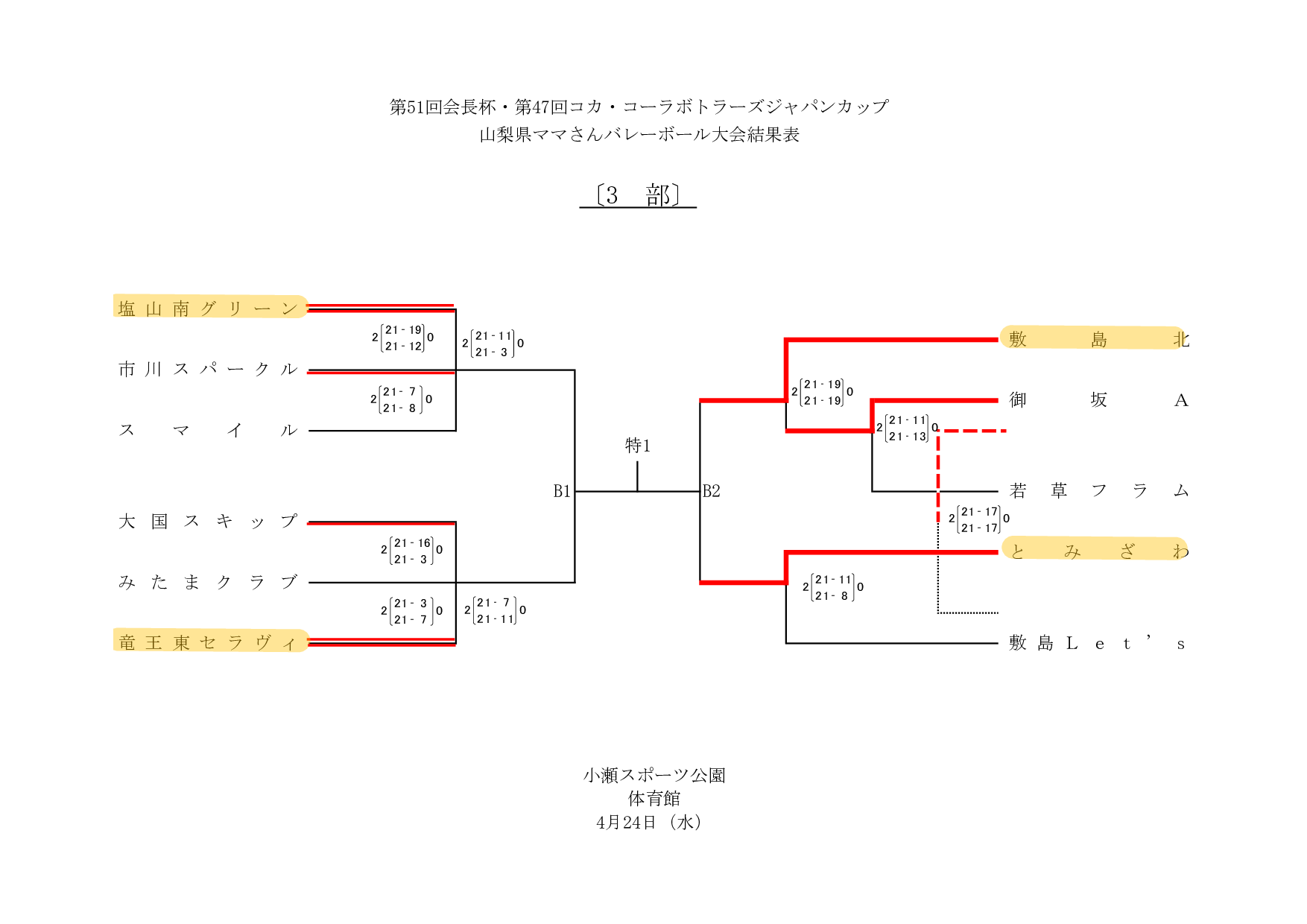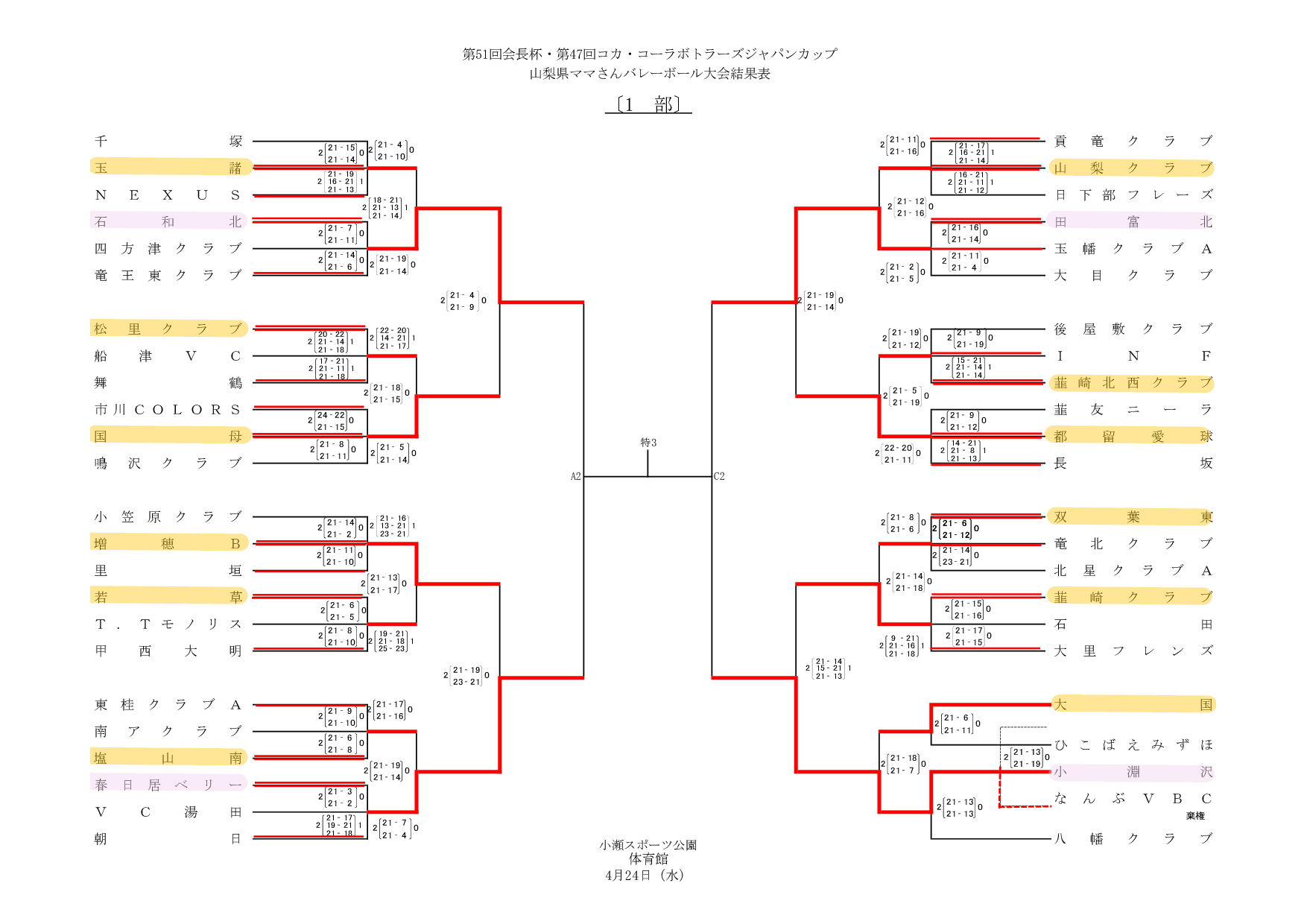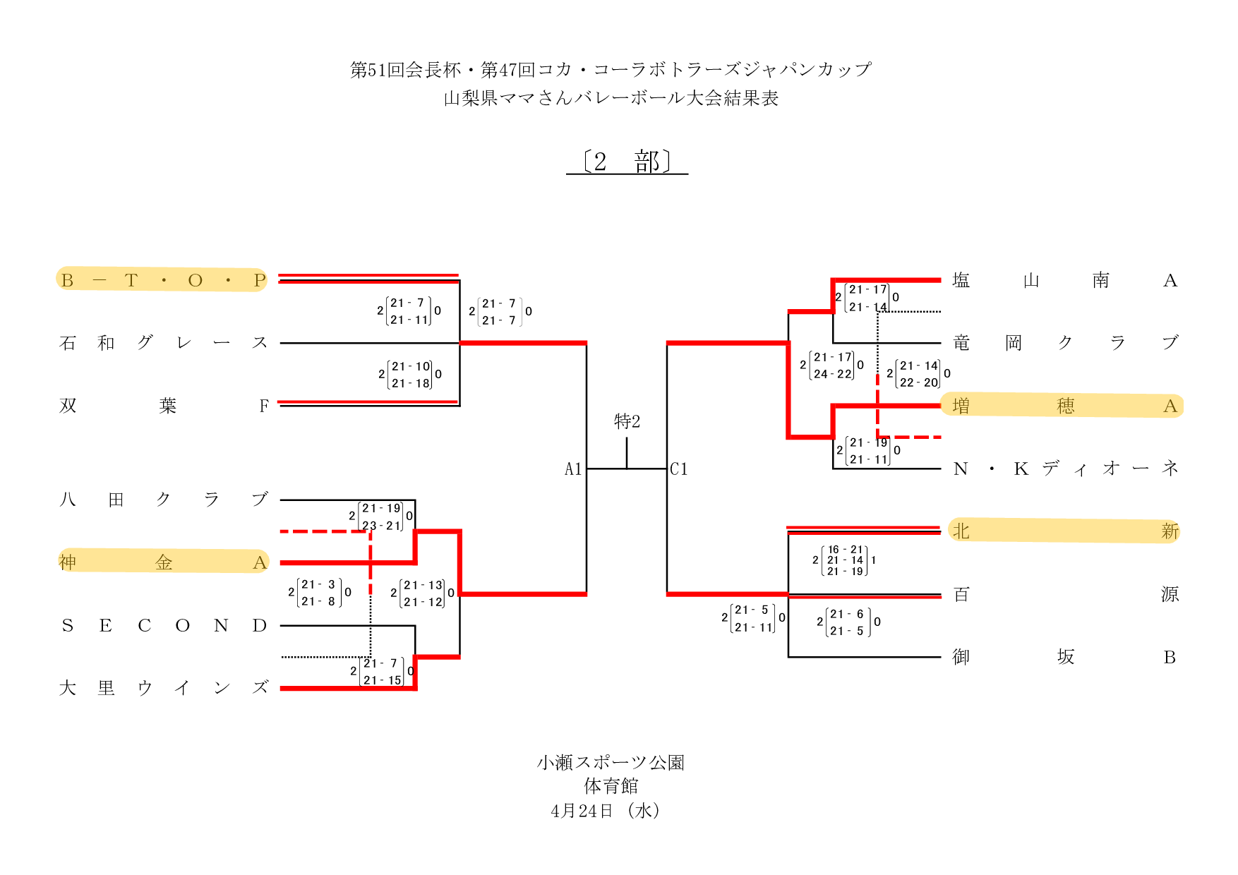 第51回会長杯・第47回コカ・コーラボトラーズジャパンカップ 2日目 結果表