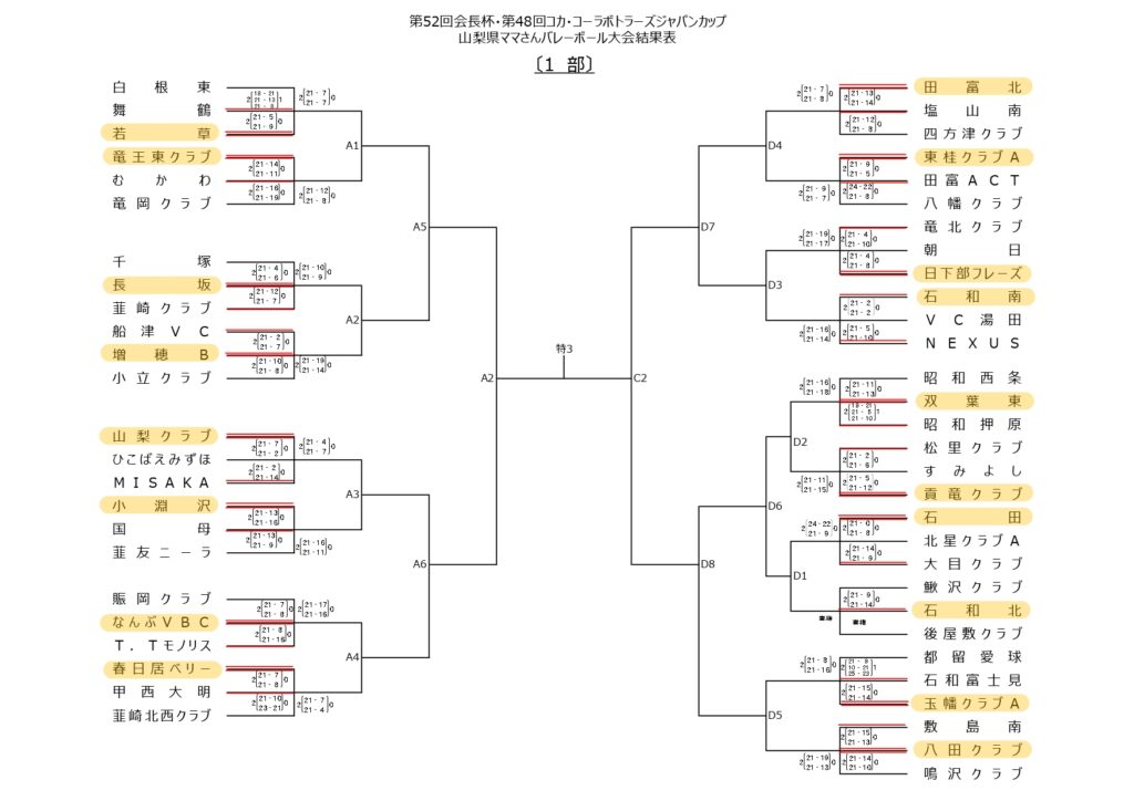 第52回会長杯・第48回コカ・コーラボトラーズジャパンカップ 1日目 結果表
