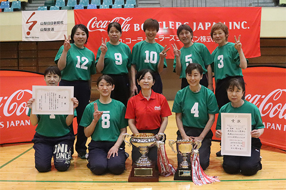 2セット目、塩山南グリーンの勢いはそのまま続き、なんとか流れを変えたい敷島北は、1-5と3-10でタイムを要求するが、流れを変える事は出来なかった。途中、5番小宮山のサーブで追い上げるも塩山南グリーンの攻撃力が勝り最後は、1番雨宮が決め、連覇を達成した。