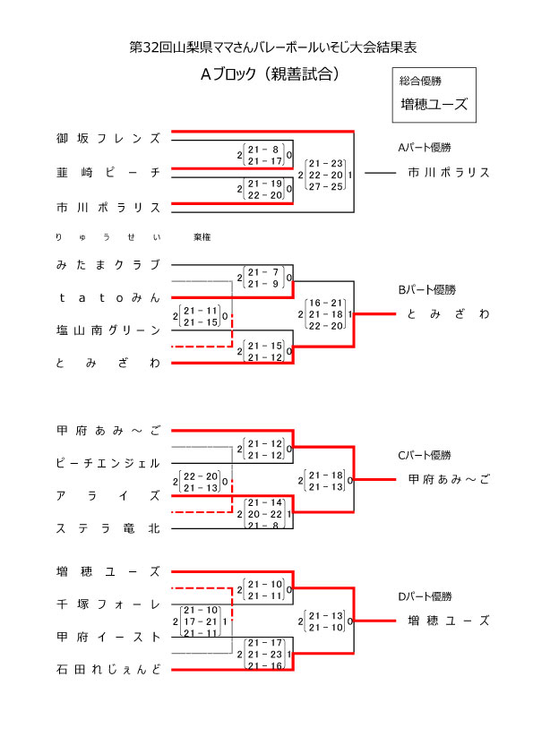 第32回 山梨県ママさんバレーボールいそじ大会結果表
