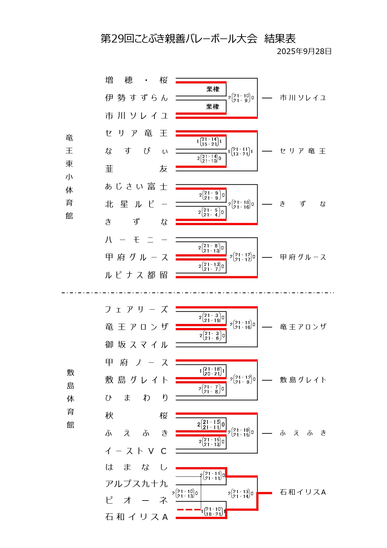 第29回ことぶき親善バレーボール大会 結果