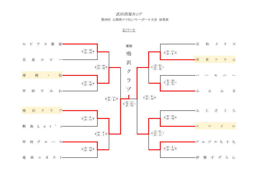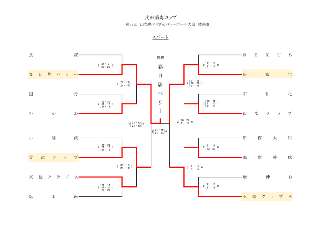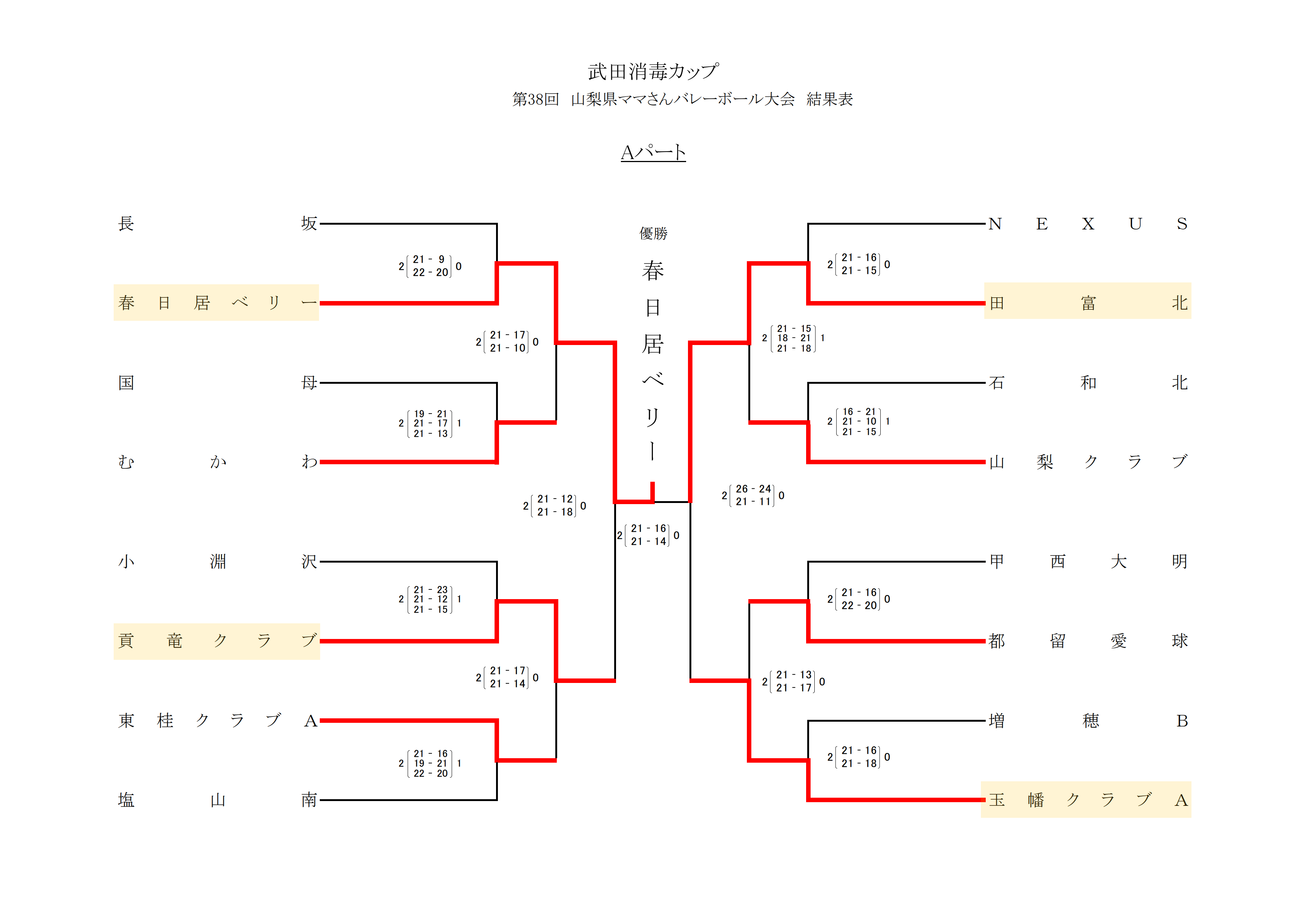 武田消毒カップ 第38回山梨県ママさんバレーボール大会【最終日結果】