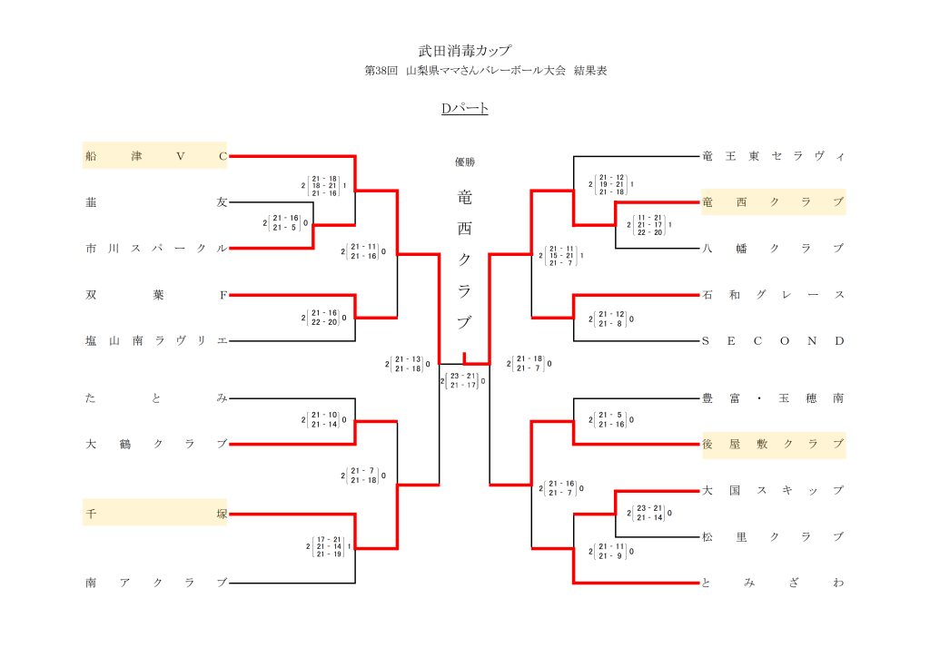 武田消毒カップ 第38回山梨県ママさんバレーボール大会【1日目結果】