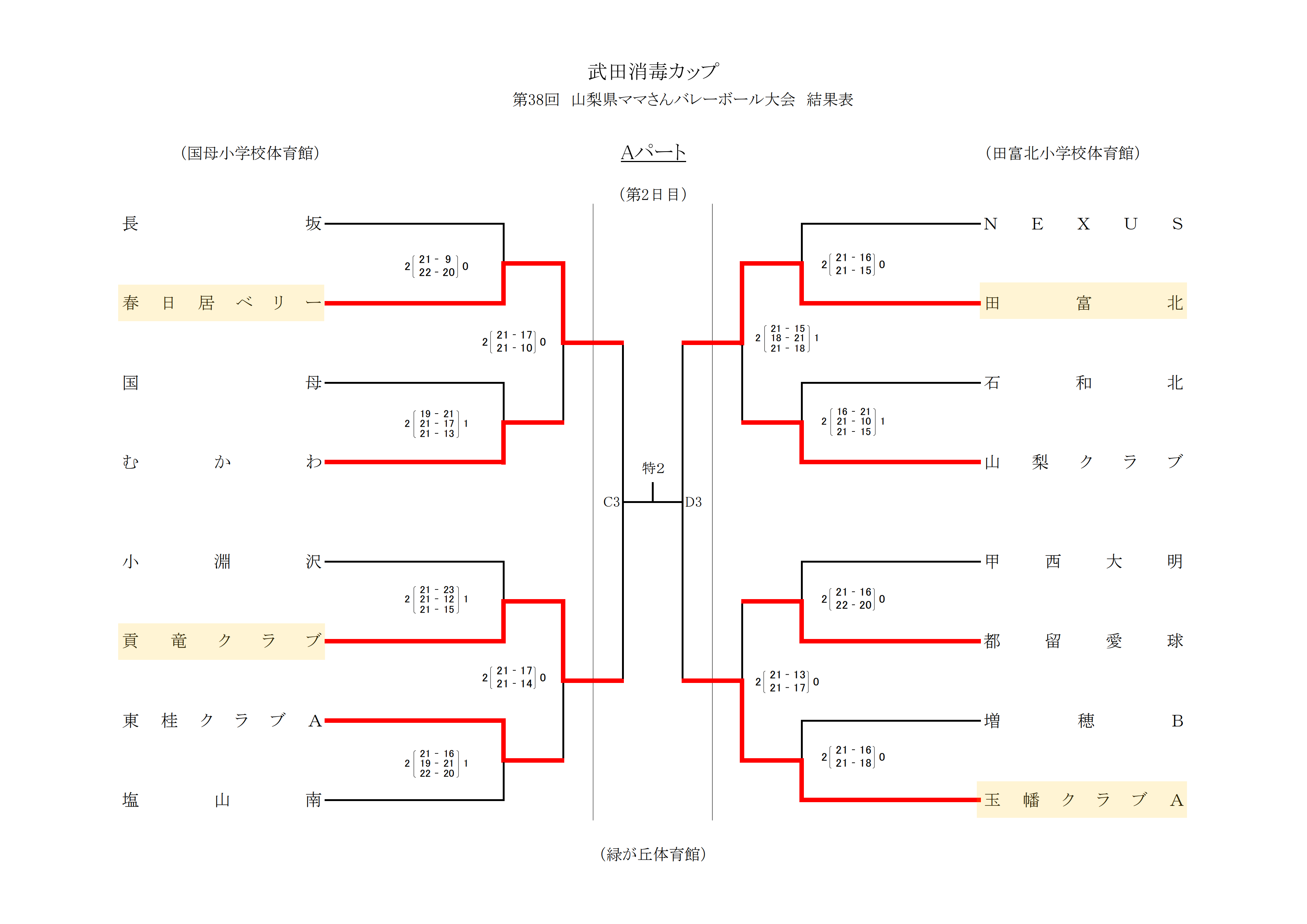 武田消毒カップ 第38回山梨県ママさんバレーボール大会【最終日結果】