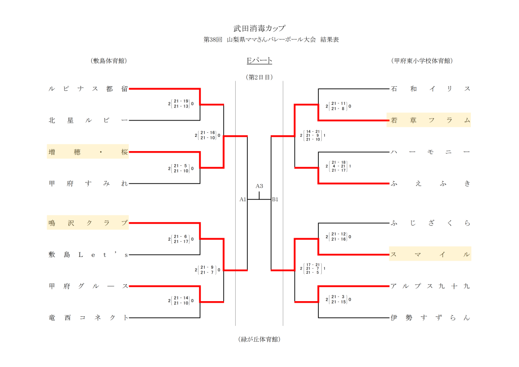 武田消毒カップ 第38回山梨県ママさんバレーボール大会【1日目結果】