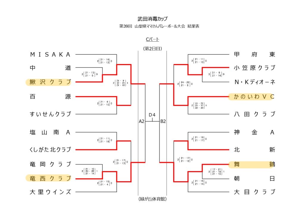 武田消毒カップ 第39回山梨県ママさんバレーボール大会【組合せ】
