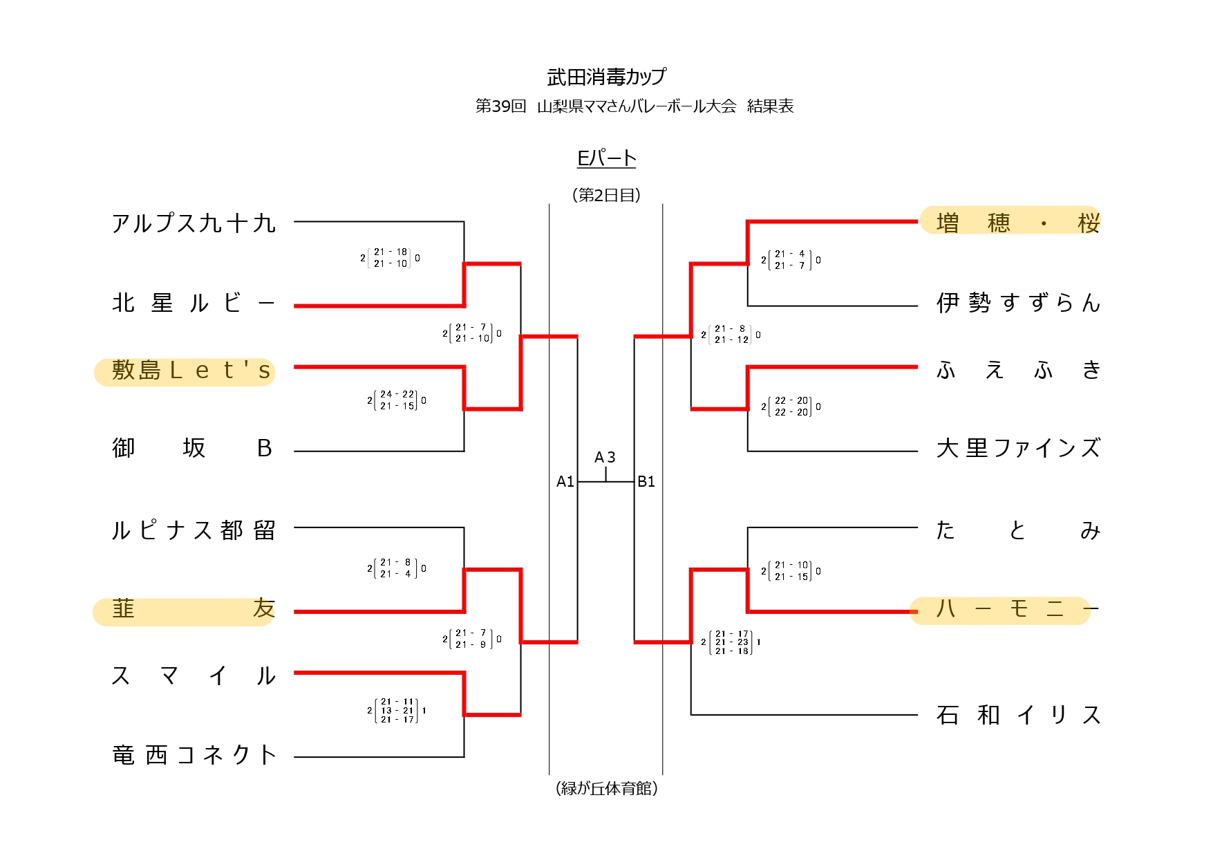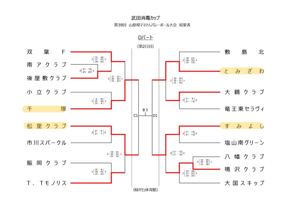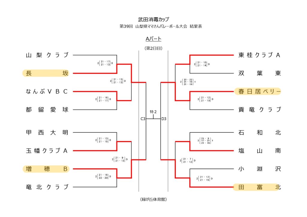 武田消毒カップ 第39回山梨県ママさんバレーボール大会【1日目結果】