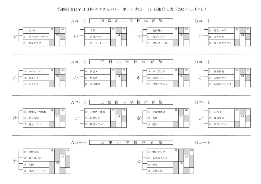 第49回山日YBS杯ママさんバレーボール大会【抽選結果】